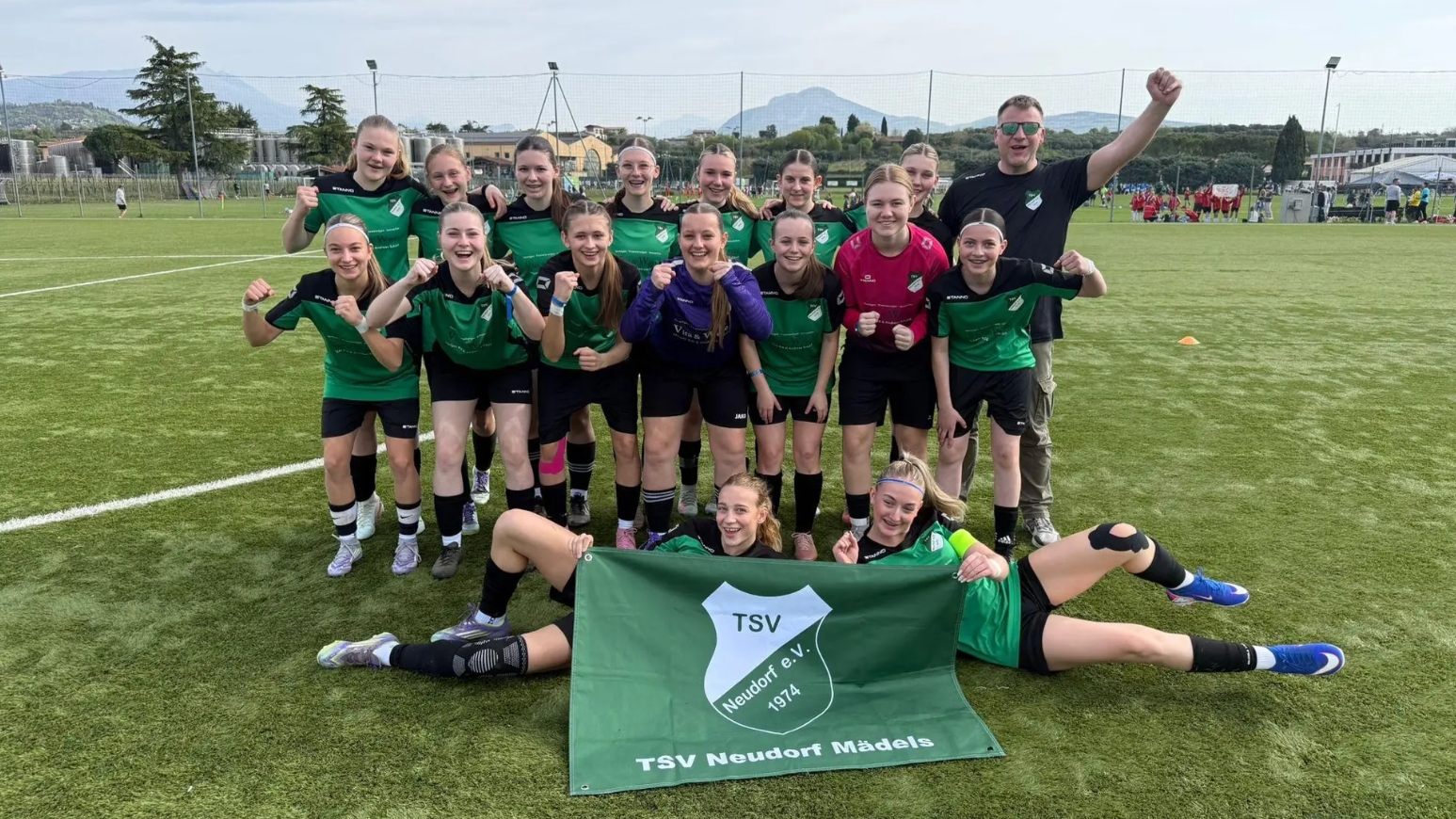 Ein unvergessliches Fußballwochenende liegt hinter unseren B-Juniorinnen: Bei strahlendem Sonnenschein und vor einer traumhaften Kulisse am Gardasee vertrat unser Team den TSV Neudorf auf internationalem Parkett. In einem hochkarätig besetzten Feld mit zehn Teams aus verschiedenen Nationen zeigten unsere Mädels eine leidenschaftliche Leistung und sicherten sich einen hervorragenden vierten Platz. Besonders emotional war das Duell gegen die Nachwuchsschmiede des Profivereins Go Ahead Eagles, die am Ende als einziger Gegner unsere spielstarken Neudorferinnen bezwingen konnten. Wir sind unglaublich stolz auf diesen Erfolg und den tollen Zusammenhalt, den das Team in Italien gezeigt hat! Einen ausführlichen Bericht über den Turnierverlauf und die Highlights des Wochenendes findet ihr bei oberpfalzdaheim.de: Hier geht es zum vollständigen Artikel auf oberpfalzdaheim.de